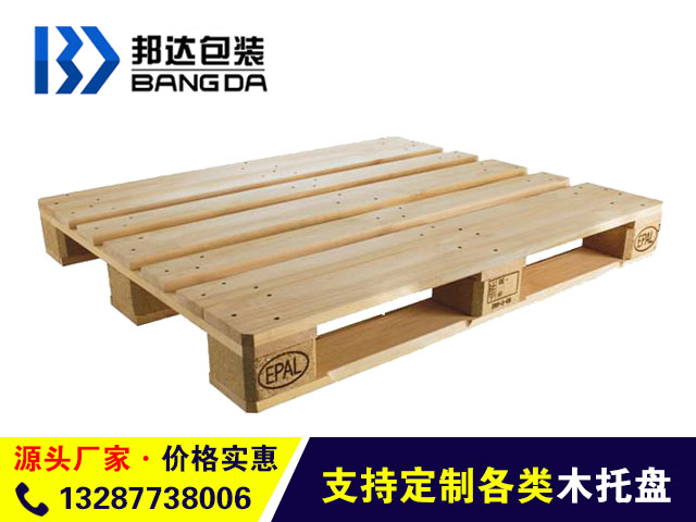 山東邦達包裝有限公司主要生產歐標托盤,美標托盤,實木木托盤,膠合板木托盤,塑料托盤,木托盤等工業包裝產品。我們是山東菏澤知名大廠,信譽口碑有保障,10多年的生產經驗,可以滿足各類木質品定制需求。邦達木托盤,廠家直銷,價格優惠,放心可靠,無顧慮。 菏澤巨野邦達木托盤的主要規格尺寸有:1200*1000/1200*800/1100*1100等,可接受客戶各種定制,目前國內木托盤的材料主要有松木、鐵衫、冷杉以及其他雜類硬木,不同的材料代表托盤的不同使用性能。歐洲托盤標準中明確規定不能使用白楊木。