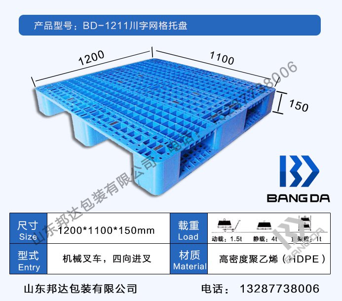 1、川字網(wǎng)格塑料托盤(pán)